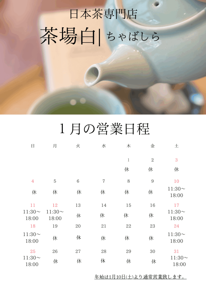 本年も茶場白に足をお運びいただき、誠にありがとうございました。