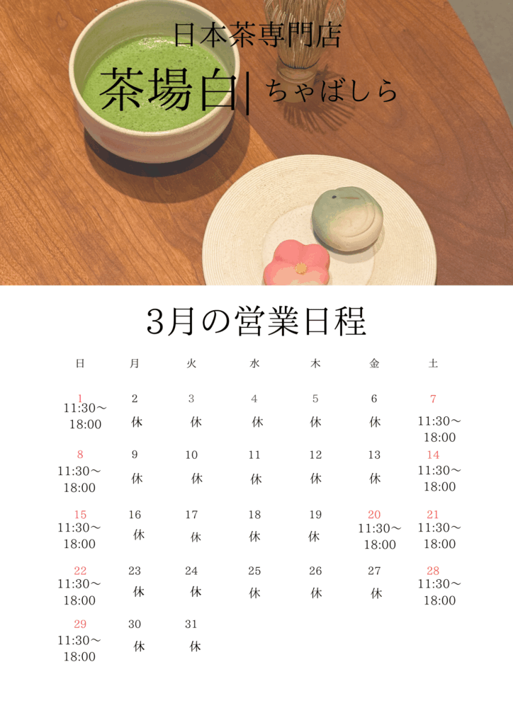 3月の営業日を更新しました。 新しい門出のお祝いにぜひご利用ください!